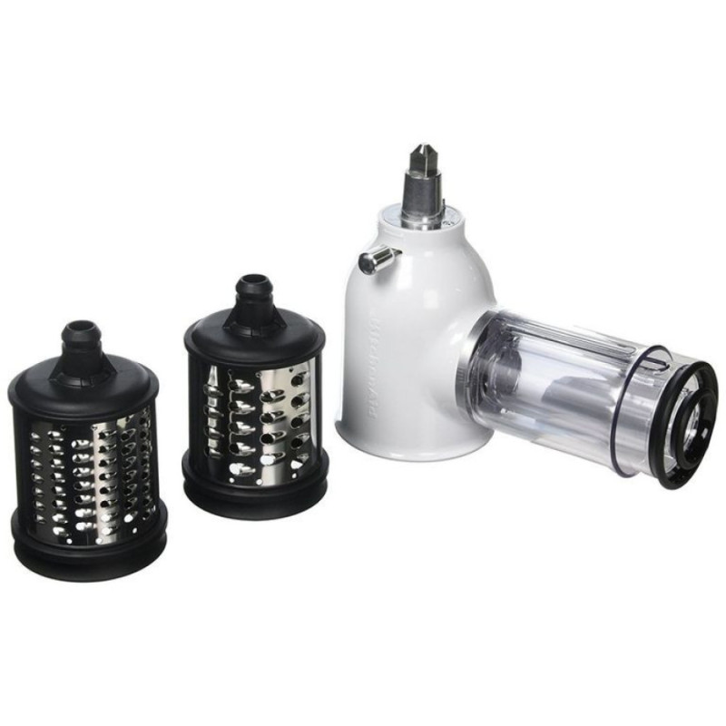 Роторна овочерізка KitchenAid є корпусом, виконаним з міцного пластику, в якому розміщується ніж у вигляді барабана, виготовлений з нержавіючої сталі. Така конструкція у поєднанні з потужним приводом планетарного міксера дозволяє за короткий час натерти або нашаткувати досить великий обсяг продуктів, що важливо, якщо у вас велика сім'я або ви любите займатися домашнім консервуванням.
