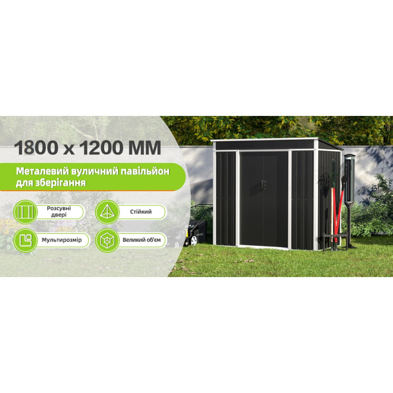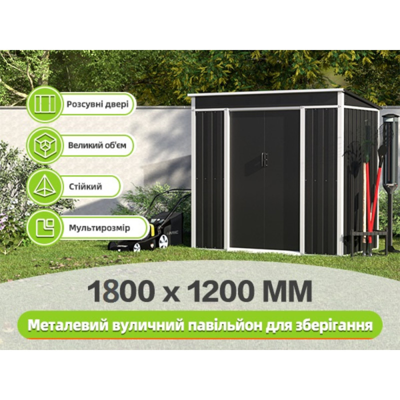 Купував цей хозблок спеціально під генератор і садовий інвентар. Дах односхилий — сніг і вода не затримуються. Темно-сірий колір виглядає сучасно і практично. Збірка проста, всі деталі пронумеровані. Дуже вдячний Nota-Bene за оперативність та якісний товар. Тепер планую замовити ще один для іншої ділянки.