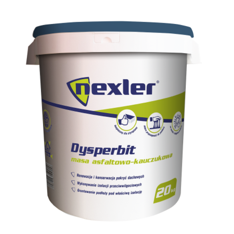 Мастика водної дисперсії бітумів, модифікованих синтетичним каучуком DYSPERBIT DN. Водна дисперсія бітумів, модифікованих синтетичним каучуком, для застосування на сухих та вологих повернях. Завдяки його тиксотропним властивостями можливе нанесення на будь-які похилі поверхні, шар не стікає з вертикальної поверхні навіть при високих температурах, при низькій температурі зберігає свою еластичність. Продукт стійкий до атмосферних факторів, воді, в слабокислотних та слаболужних середах, до дії агресивних субстанцій, що містяться в землі. ГАЛУЗЬ ЗАСТОСУВАННЯ: Оновлення та консервація покрівельного покриття, виконання суцільного (безшовного) покрівельного килима армованого волокном, виконання гідроізоляції підвальних приміщень, гаражів, балконів, терас. Служить також для запобігання від вологості підземних частин будівель, фундаментів і т.д. Може використовуватися в якості грунтовки на поверхні всіх елементів конструкції. Для цього необхідно дисперсію розбавити водою в пропорції 1:2. Масу «Dysperbit Dn» можна без побоювання застосовувати в безпосередньому контакті з пінополістиролом.