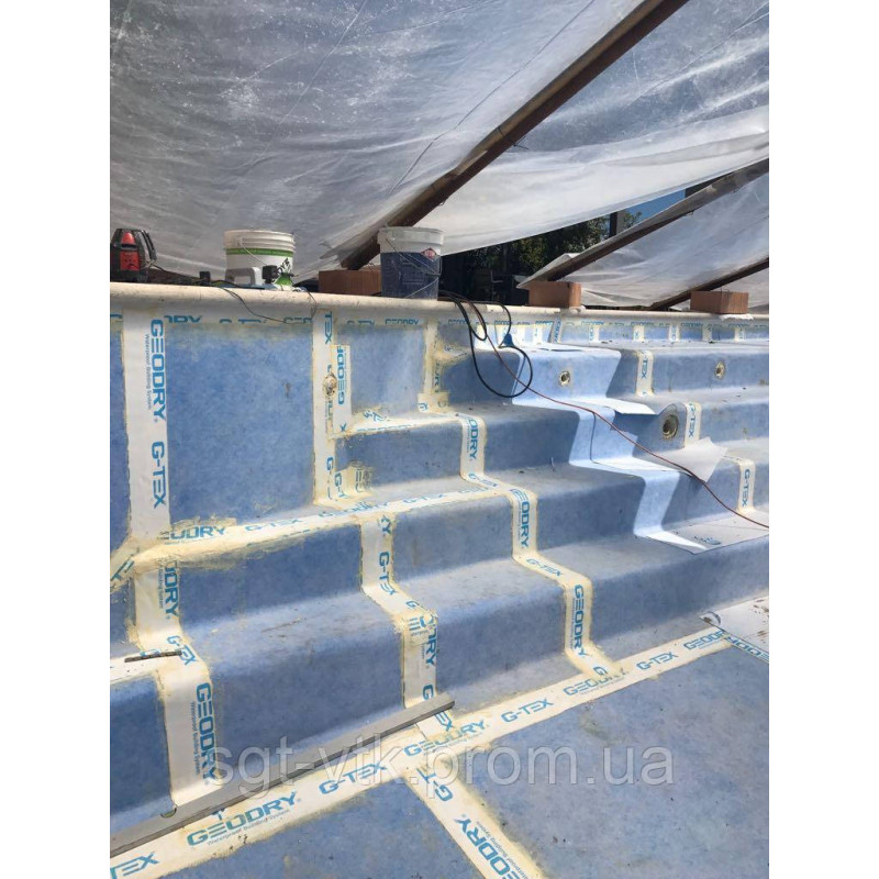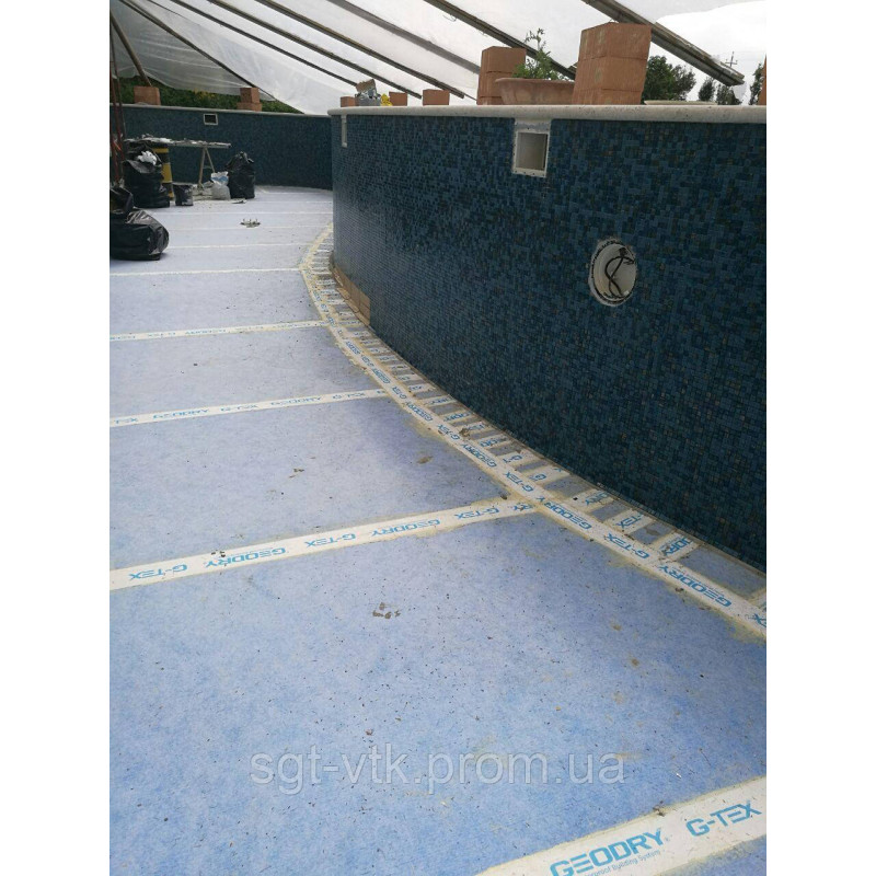 Використання G-TEX STRIP в гідроізоляційних системах GEODRY дозволяє створити ідеально безперервну гідроізоляцію в точках з'єднань між підлогою і стіною, в т.ч. на особливо складних архітектурних поверхнях.