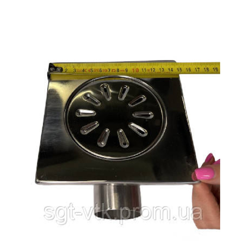 Трап з нержавіючої сталі серія SLIM (3046) вертикальний 10*10см D50