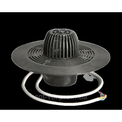 Покрівельна воронка зі збільшеним корпусом для більшого прилягання гідро-, пароізоляційних матеріалів до воронки, а її корпусу до площини покрівлі, з листоприймачем, вертикальним виходом, діаметром 110 і висотою 100 і 600 мм. Сучасна покрівля - це складна конструкція, представляє собою багатошаровий пиріг, що складається з багатьох компонентів: пароізоляції, утеплювача, вітрозахисту, гідроізоляції, покрівельного покриття та ін. Вертикальна поліпропіленова воронка з нержавіючим фланцем та електрообігрівом - це найоптимальніший спосіб відведення дощових і талих вод з поверхні плоскої покрівлі. Воронки можуть застосовуються як при будівництві, так і при ремонті плоских покрівель, з будь-якими гідро і пароізоляційними матеріалами. Всі покрівельні воронки можуть бути оснащені системою обігріву, для запобігання замерзання води в перехідний період (осінь-зима-весна). Система обігріву включає в себе обід фіксації, в який вкладається кабель обігріву та притискає його до корпусу воронки. Саморегулюючий кабель з робочою напругою 220В, потужністю 15Вт змінює свою тепловіддачу залежно від температури навколишнього середовища. Для обмеження підігріву та економії електроенергії рекомендується підключення кабелю через термостат, що працює в діапазоні температур від -5 ° С до + 5 ° С. В іншому випадку обігрів буде здійснюватися при більш низьких мінусових температурах, що не є обов'язковим, так як під час морозів сніг не тане і немає необхідності у відведенні води.