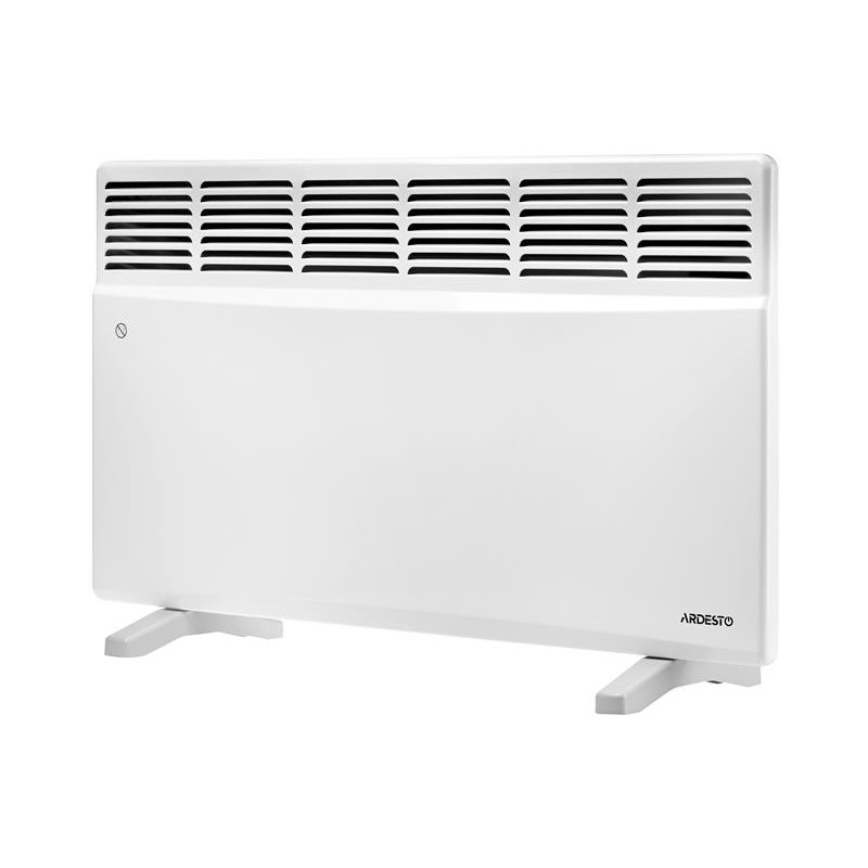 Механічне керування Відкритий стрічковий нагрівальний елемент Режими потужності: 1000/2000 Вт Рекомендована площа обігріву: до 20 м2 Сила струму: 7.8 - 9.1 А Клас захисту від ураження електричним струмом: II Клас захисту оболонки: IP20 Захист від перегріву Захист від замерзання Запобіжник захисту від перекидання Тип встановлення: настінний, підлоговий (опори в комплекті) Розміри виробу: 785х450х110 мм Вага виробу: 4,4 кг Розміри в пакуванні: 860х470х100 мм Вага в пакуванні: 5,5 кг Комплектація: конвектор, кронштейни для настінного монтажу, опори для підлогового встановлення, посібник користувача, гарантійний талон Колір: білий Гарантійний термін 5 років Країна виробництва: Украина
