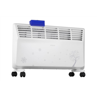 конвектор з механічним керуванням білого кольору зі стильним візерунком, класом захисту IP20 і двома режимами потужності 1 000/2 000 Вт. Розрахований на обігрів приміщення площею до 20 м2. Клас енергозахисту – другий. У цій моделі передбачено сушку та контейнер для природнього зволоження повітря. Є захист від перегріву та датчик від перекидання. Ця модель обігрівача має два типи монтажу – настінний і підлоговий. Кронштейни та опори із коліщатками для підлогового встановлення постачаються в комплекті з обігрівачем.