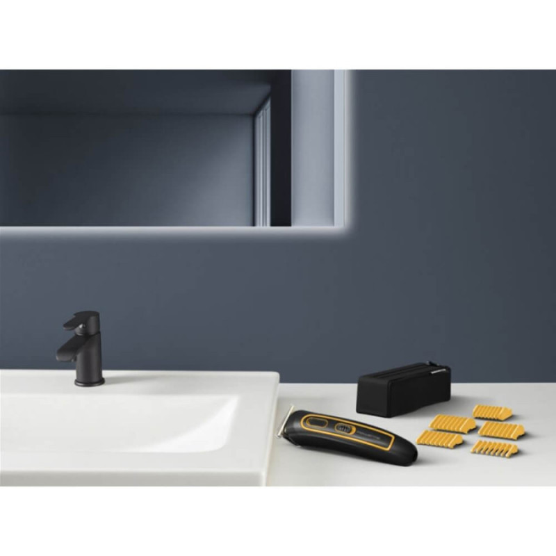 Самозаточувальні леза з титановим покриттям у три рази міцніші за нержавіючу сталь, що гарантує довговічну гостроту та бездоганний результат. Потужний роторний мотор зі швидкістю 6500 об/хв забезпечує стабільну ефективність під час будь-якого типу стрижки. Літій-іонний акумулятор працює до 120 хвилин без підзарядки, а повна зарядка триває лише 90 хвилин. Завдяки технології Wet&Dry тример можна безпечно використовувати під душем і легко очищати під струменем води.