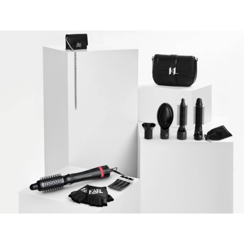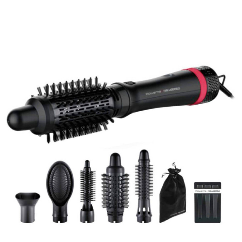 Фен-щітка Rowenta x KARL LAGERFELD Express Style CF635LF0 — це поєднання елегантного дизайну, потужності та турботи про волосся, створене для тих, хто хоче досягати професійного результату, не виходячи з дому. Завдяки потужності 800 Вт і технології Keratin & Glow прилад одночасно сушить і укладає волосся, зберігаючи його природну м’якість і блиск. Турмалінове покриття разом із про-кератином зменшує статичну електрику, запобігає пухнастості та дарує волоссю здоровий, доглянутий вигляд.