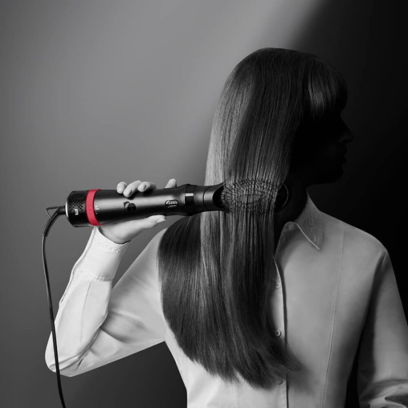 Модель пропонує широкий вибір насадок, щоб створювати різні стилі залежно від настрою: щітка 20 мм ідеально підходить для чубчика та короткого волосся, щітка 50 мм — для волосся середньої довжини чи довгого, насадка з висувною щетиною допоможе зробити об’ємні хвилі та локони, а плоска щітка забезпечить природне випрямлення. З одним інструментом ви зможете створювати як м’які повсякденні укладки, так і вишукані вечірні образи.