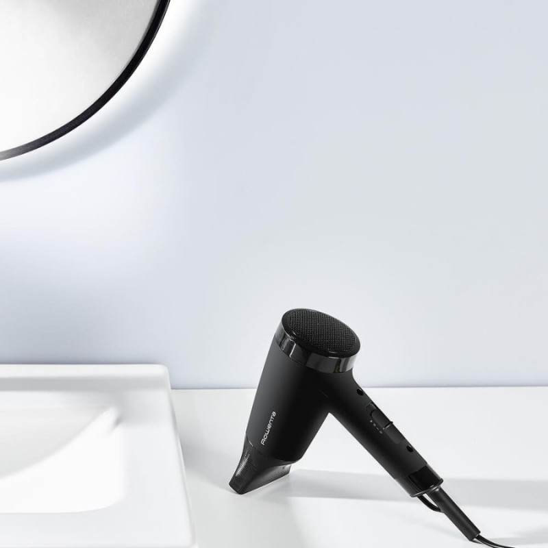 Модель вирізняється малою вагою та ергономічною формою, що робить користування приладом зручним навіть під час тривалих сеансів укладання. Фен оснащено петлею для підвішування, тож його легко зберігати навіть у невеликому просторі. Шнур довжиною 1,8 м забезпечує свободу рухів і комфорт під час використання.