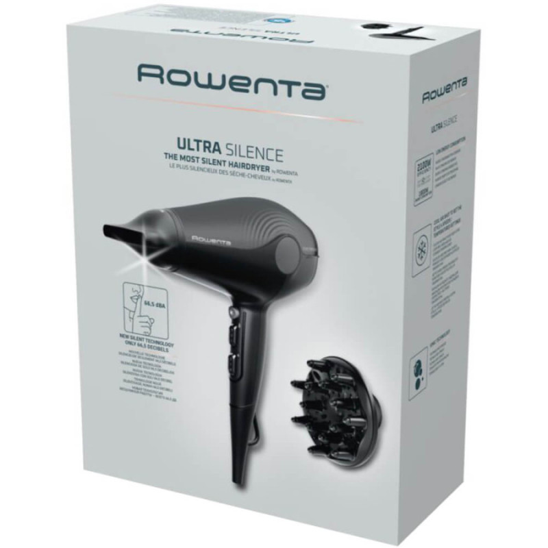Фен Rowenta Ultra Silence CV6430F0 поєднує високу потужність, тиху роботу та інноваційні технології для щоденного догляду за волоссям. Гібридний мотор знижує рівень шуму до 66,5 дБА — це робить роботу фена тихішою, ніж повсякденна розмова.