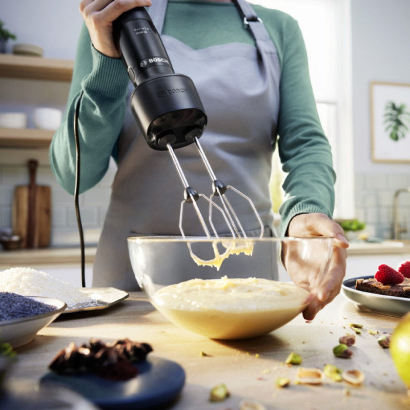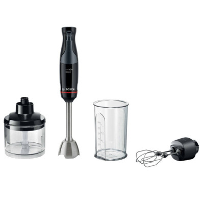 Bosch MSM4B624 – потужний занурювальний блендер у легкому корпусі з міцною металевою ніжкою. Має високопродуктивний двигун потужністю до 1000 Вт для ефективного подрібнення твердих інгредієнтів (горіхів, сиру) та складних викликів у приготуванні.