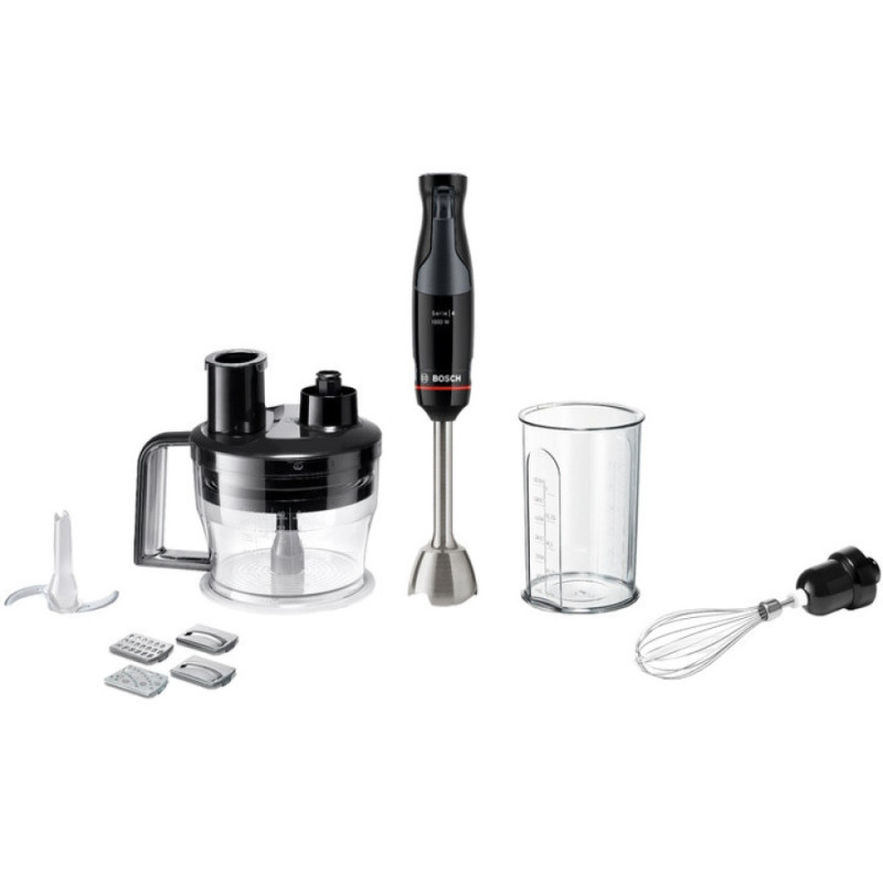 Занурювальний блендер Bosch MSM4B670 потужний та міцний, має легкий корпус та міцну металеву ніжку блендера. Високопродуктивний двигун потужністю до 1000 Вт для ефективного подрібнення твердих інгредієнтів (горіхів, сиру) та складних викликів у приготуванні.