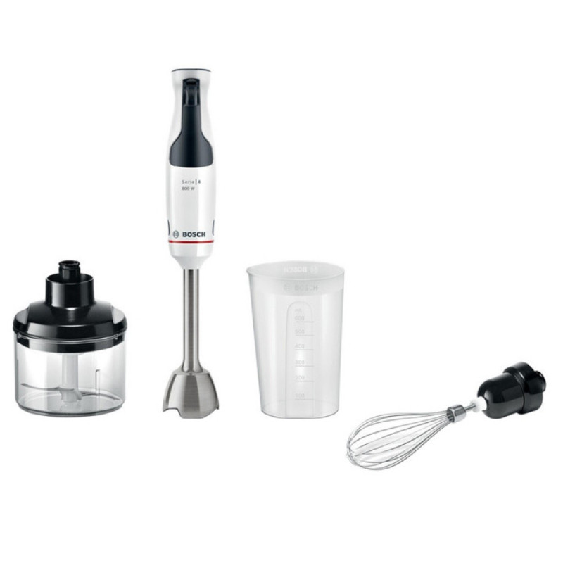 Блендер занурювальний Bosch MSM4W421 – досягайте ідеальних результатів без зусиль. Завдяки потужному двигуну 800 Вт блендер легко справляється зі змішуванням та подрібненням зелені, горіхів, сиру, м'яса та інших продуктів.