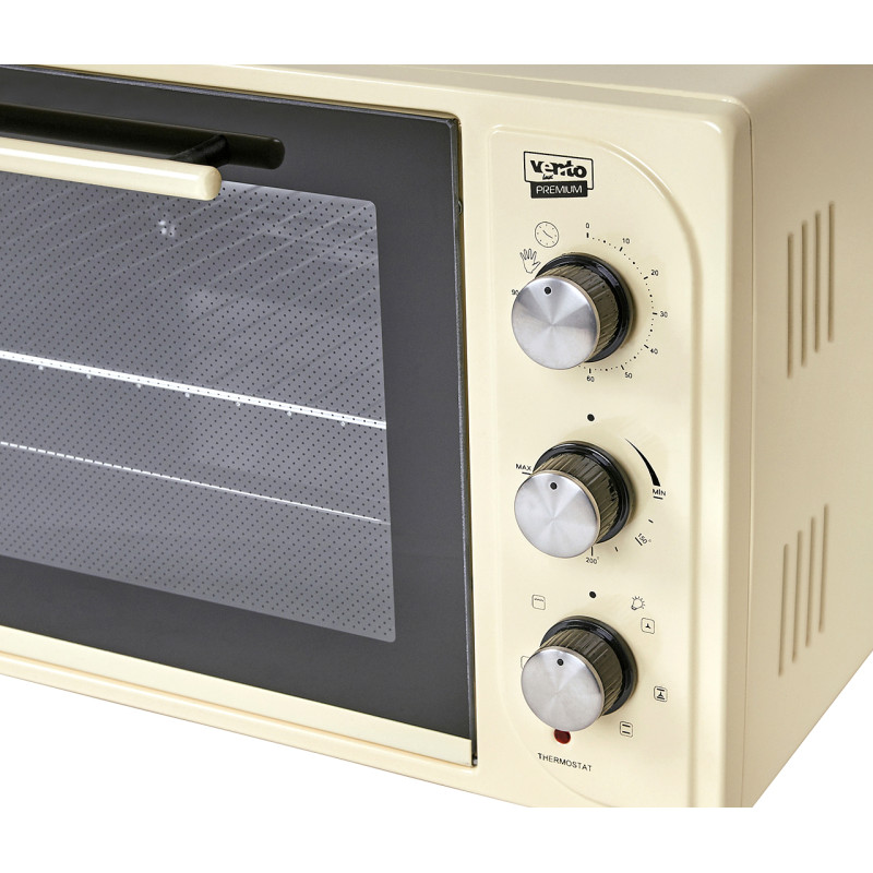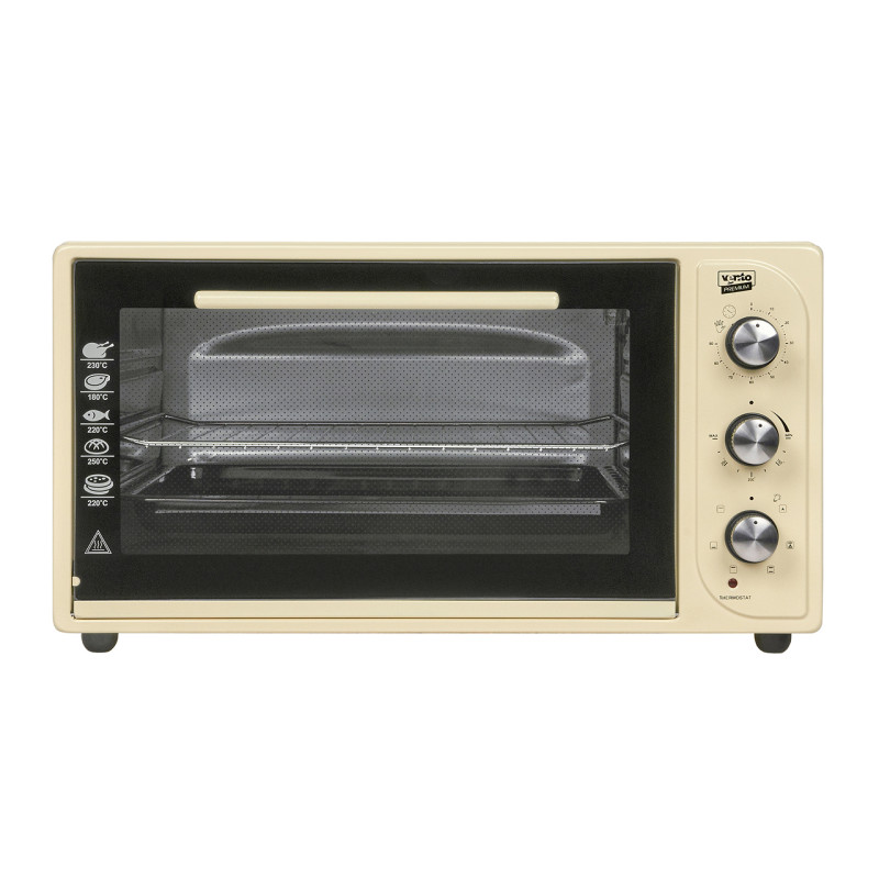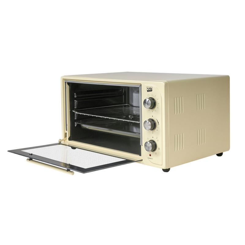 Міні-піч KAMILA Багатофункціональна настільна міні-піч KAMILA, виконана в стильному кремовому кольорі, однозначно стане оздобою будь-якої кухні. Електропіч входить в лінійку Premium Line від торгової марки Ventolux, адже виготовлена з якісних матеріалів і оснащена багатим функціоналом. Настільна електропіч KAMILA зручно, надійно і недорого! Міні-піч - це зменшений аналог традиційної вбудованої духовки, яка оснащена тим же функціоналом. При значно менших габаритах, об'єм настільної духовки все одно досить великий - 45 літрів. Переваги електропечі KAMILA від бренду Вентолюкс : Елегантний кремовий колір. 6 видів режимів приготування їжі. У міні-печі реалізована конвекція і освітлення. Механічний таймер самостійно відключить духовку після закінчення обраного часу. Максимальна температура приготування - 250°С. Зручні механічні ручки управління. Під дверцятами розташований гумовий ущільнювач, який виключає ймовірність пошкодження дверцята і витоку теплоти. Також дверцята обладнана надійним напрямних, який не дозволить їй мимовільно закритися. Усередині міні-піч Каміла виготовлена з емалі легкого очищення, що робить догляд за нею простим і швидким. Також перевагою в догляді є і те, що нижній нагрівальний елемент розташований під емаллю, тому частинки їжі не будуть провалюватися в нього. ХАРАКТЕРИСТИКИ: Тип - електропечі Колір - кремовий Матеріал - емаль Конвекція - є Об'єм, л - 45 Програматор - механічний Скла в дверці, к-ть - 1 Макс. температура, °С - 50-250 Макс. потужність, Вт - 1500 Енергоcпоживання - А Система очистки - емаль легкої очистки Програм, к-ть - 6-конвекція, верхній і нижній нагрів+конвекція, верхній і нижній нагрів, верхній нагрів, нижній нагрів, гриль У комплекті - решітка-гриль, прямокутне деко, кругле деко Живлення, В - 220 Автовідключення - є Внутрішня підсвітка - є Звуковий сигнал - є Особливості: ущільнювач скляної дверці, захисне кріплення з металу для скла, щільне кріплення нагрівальних елементів, нагрівальні елементи із нержавіючої сталі, механізм легкого знімання дверцят, індикатор роботи, індикатор термостата, автовимикання Таймер, хв. - 90 Функції приготування - випічка, гриль, запікання, розморозка Вага, кг - 15 Вага в упаковці, кг - 16,4 Габарит. розміри (В*Ш*Г), мм - 300*600*400 Розміри упаковки (В*Ш*Г), мм - 350*630*460