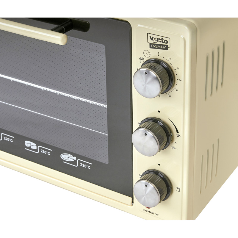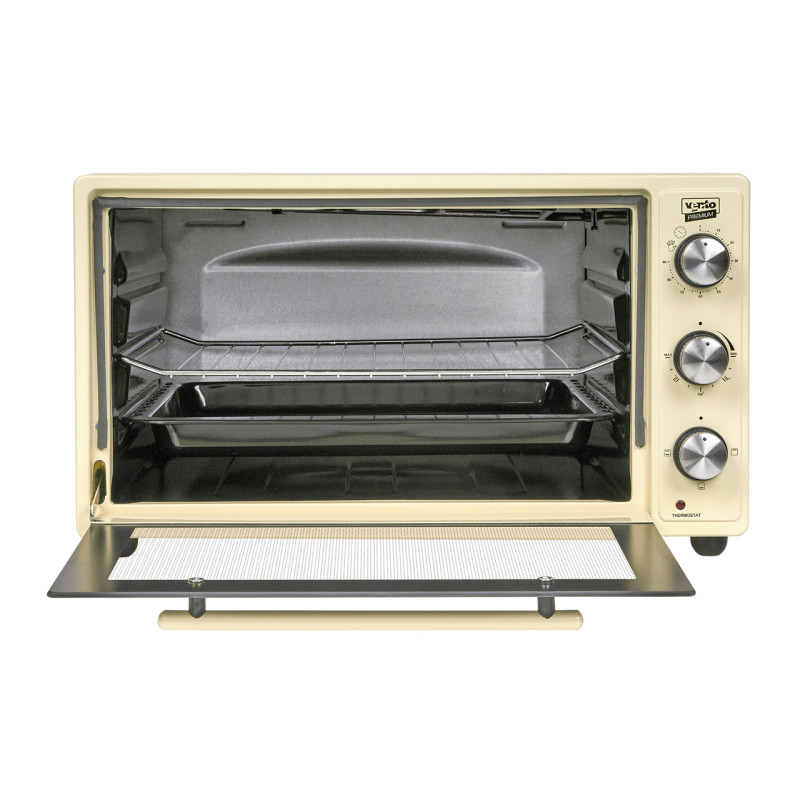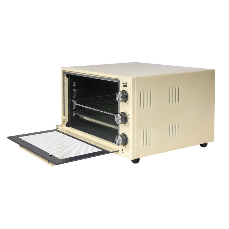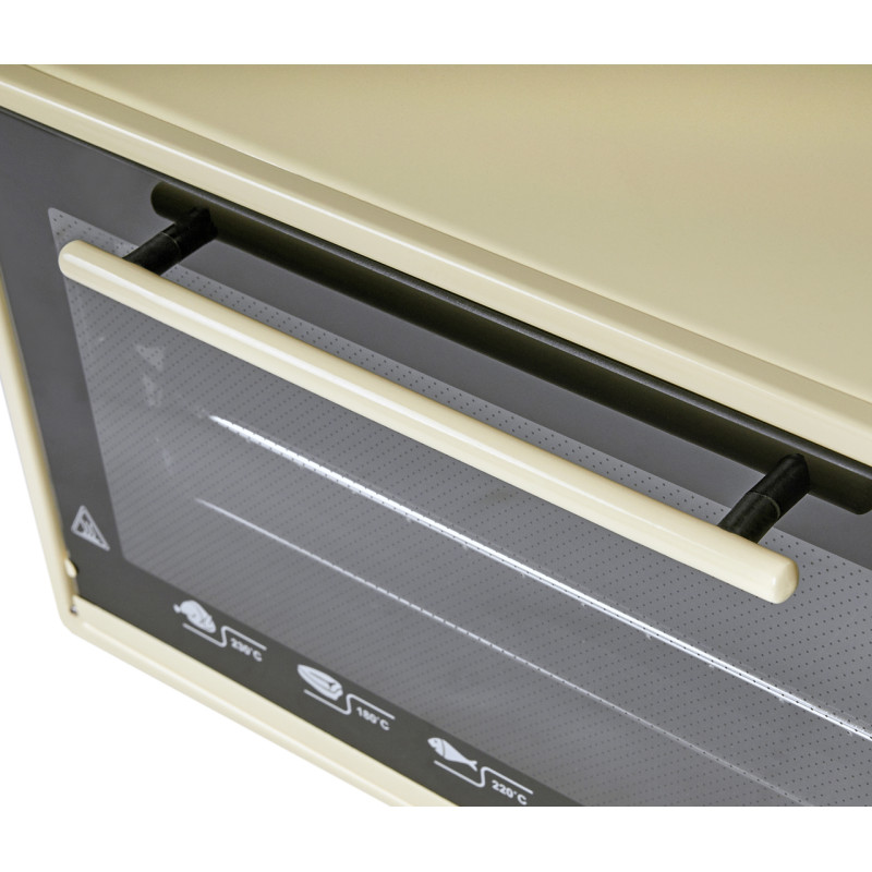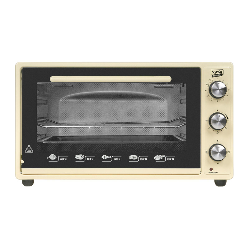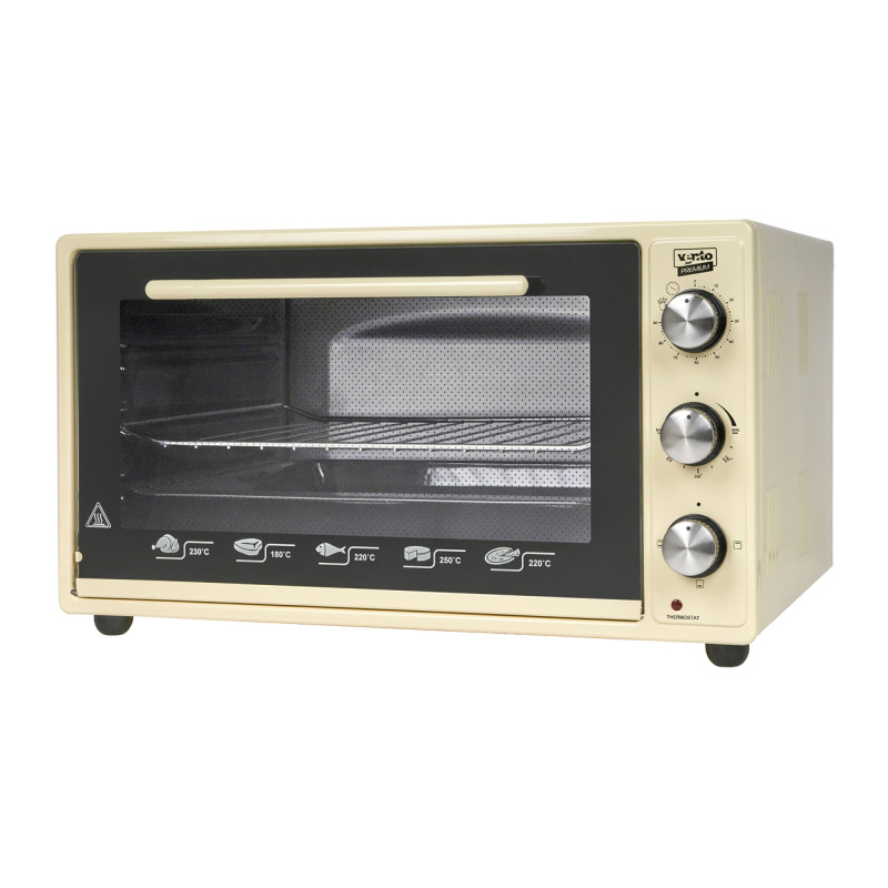 Настільна піч SOFIA Модель SOFIA відрізняється своєю доступною ціною, адже торгова марка Ventolux спеціально розробляла недорогу і якісну настільну духовку, яка буде доступна кожній українській родині. На відміну від інших моделей, міні-піч SOFIA має класичний кремовий колір. Настільна піч SOFIA: надійна і доступна помічниця для кожної господині! Ця модель обладнана стандартними режимами готування, які можуть використовуватись індивідуально верхній або нижній тени або їх комбінації. Також механічний таймер самостійно відключить техніку після закінчення обраного часу. Для любителів техніки в інших кольорах, ця модель є в білому і сріблястому кольорах. Особливості настільної міні-печі Софія: Приємний кремовий колір. Надійні та зручні ручки управління. 3 режими приготування. Нижній нагрівальний елемент закритий, що не дозволяє залишкам їжі провалитися туди. Найбільш доступна ціна в цьому сегменті. У комплекті з технікою йде решітка гриль і два дека різних форм. ХАРАКТЕРИСТИКИ: Тип -електропечі Колір- кремовий Матеріал - емаль Конвекція - немає Об'єм, л - 36 Програматор - механічний Скла в дверці, к-ть - 1 Макс. температура, °С -50-250 Макс. потужність, Вт - 1300 Енергоcпоживання - А Система очистки - емаль легкої очистки Програм, к-ть - 3-верхній і нижній нагрів, верхній нагрів, нижній нагрів У комплекті - решітка-гриль, прямокутне деко, кругле деко Живлення, В - 220 Автовідключення - є Внутрішня підсвітка - немає Звуковий сигнал - є Особливості: ущільнювач скляної дверці, захисне кріплення з металу для скла, щільне кріплення нагрівальних елементів, нагрівальні елементи із нержавіючої сталі, механізм легкого знімання дверцят, індикатор роботи, індикатор термостата, автовимикання Таймер, хв. - 90 Функції приготування - випічка, гриль, запікання Вага, кг - 13,3 Вага в упаковці, кг - 14,1 Габарит. розміри (В*Ш*Г), мм - 270x500x400 Розміри упаковки (В*Ш*Г), мм - 315x525x460