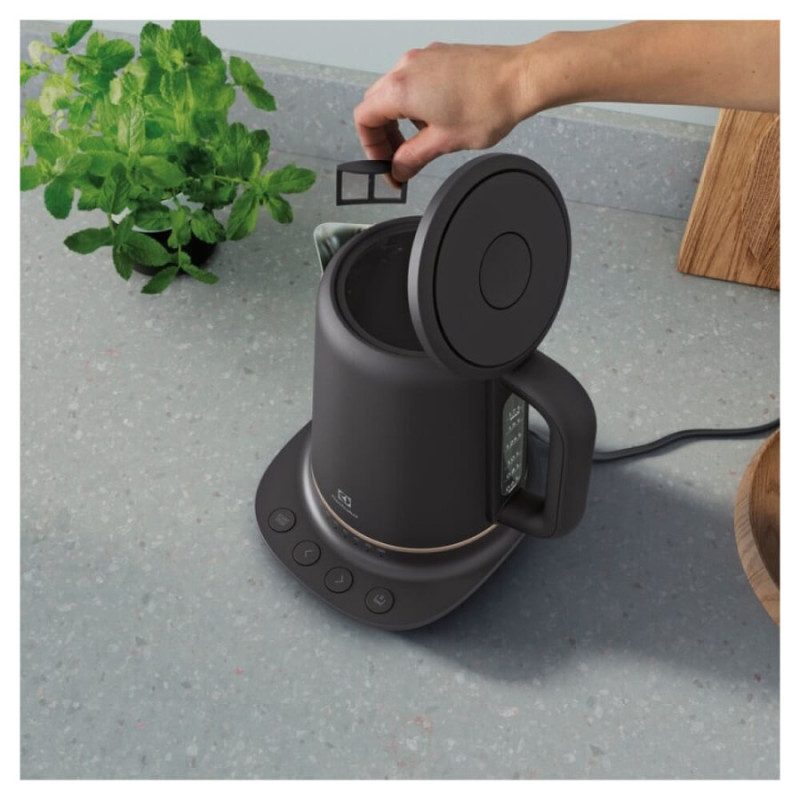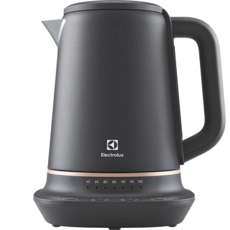 Electrolux E7K1-6BP розрахований на поетапне розміщення температур для нагрівання. Так, у чайнику є регулятор температури, що дозволяє нагрівати воду до певної температури. У цій градації присутні такі температурні показники як 40, 60, 80, 85, 90, 95, 100⁰С. Для кожного сорту чаю потрібна спеціальна температура заварювання. Це дає можливість більш точно заварювати чай, щоб розкрити тонкощі його смаку. Electrolux E7K1-6BP може тримати певну температуру до 40 хвилин. Тобто, якщо ви заварили чай до певної температури та пішли на деякий час – чайник буде підтримувати її стабільно, і ви зможете насолодитися напоєм пізніше. Прилад оснащений прекрасним і функціональним фільтром для накипу, який залишає вашу воду чистою і без будь-яких домішок.