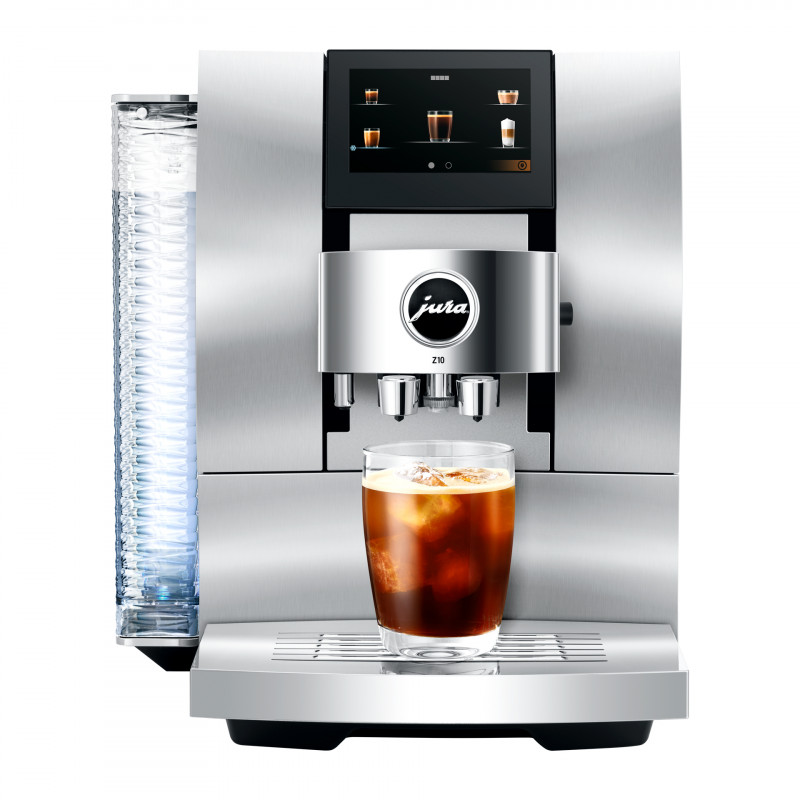 Шедевр швейцарської інженерії, новий Z10 Aluminium White Inox подвоює асортимент кавових напоїв. Одним натисканням кнопки він готує повний спектр гарячих напоїв від інтенсивного еспресо до ультрамодного білого кольору. Це також відкриває абсолютно новий вимір в насолоді кави з введенням фірмових холодних напоїв. Це стало можливим завдяки подрібнювача з розпізнаванням продукту (P.R.G.), який розпізнавши обраний сорт миттєво і точно регулює тонкість помелу.