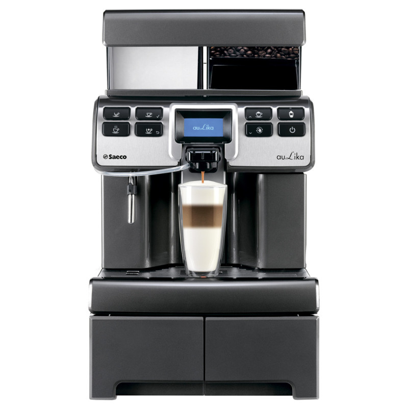 Saeco Aulika — лінійка напівпрофесійних автоматів універсального використання. Аулики успішно працюють в офісах, клініках, салонах краси та в підприємствах громадського харчування, забезпечуючи продуктивність до 130 кавно-молочних напоїв на годину. Кавомашина Saeco Aulika Top High Speed Cappuccino Anthracite як модель вийшла в другій половині 2018 року на зміну попереднім моделям Aulika Top HSC Silver и Black з апгрейтом як електроніки, так і електромеханічних вузлів. Також її вирізняє темно-сірий із цікавим відливом корпус кольору "Антрацит". Aulika Top High Speed Cappuccino Anthracite: кавомолка й екстракція еспресо Вбудована кавомолка з великим діаметром жорен забезпечує якісний помел, а система адаптації кавомолки SAS — стабільність помелу незалежно від сорту кави або вологості довкілля. Функція попереднього помелу прискорює роботу: поки йде екстракція однієї порції еспресо, кавомолка вже намолює сліду. Функція попереднього змочування кави дає змогу з тієї ж порції отримати більше смаку й аромату в напій. Електронне регулювання об'єму кави в чашці допомагає стабільно готувати порцію за порцією стабільного об'єму, але водночас порцію завжди можна зменшити, перервавши процес вручну. Saeco Aulika: функція One Touch для капучино та лате-макіатто Автоматична кавоварка еспресо має функцію One Touch, під якою мається на увазі приготування молочних напоїв без пересування чашки, натисканням однієї кнопки. Є також окрема трубка подавання гарячої води для американо або чаю. Aulika забезпечена русифікованим тридюймовим дисплеєм, зручними й інтуїтивно зрозумілими кнопками керування на фронтальній частині кавомашини. Що означає High Speed Cappuccino? Основні відмінності від першої моделі Aulika Top RI9846/01 (та, що без приставки HSC): — версії High Speed Cappuccino під час приготування капучино або лате здійснює подавання кави та молочної піни одночасно, що неабияк прискорює процес приготування. Також у нових версіях Saeco Aulika HSC кожна кнопка підсвічується, що зробило користування кавомашиною в темну пору доби зручнішим. Нова версія капучинатора: кавомашина Aulika Top High Speed Cappuccino не зобов'язує вас ставити ємність із молоком тільки з лівого боку, оскільки має в комплекті два перехідники, ліворуч і праворуч. Saeco Aulika Top: чи так уже потрібно завантажити інструкцію? Прилад обладнаний зручною, інтуїтивно зрозумілою панеллю керування й кольоровим русифікованим дисплеєм, тому для експлуатації попереднє навчання й особливі навички не потрібні: досить пройти короткий інструктаж або прочитати зрозумілу інструкцію для обслуговування. Приготувати ж собі чашку кави можна без жодної підготовки, керування інтуїтивно, як вендинговий кавомат. Кавоварка Saeco Aulika Top HSC заздалегідь виводить інформаційні повідомлення про потребу зробити чищення від накипу, долити воду або викинути макухи. Для обліку кількості приготованих напоїв передбачений лічильник кількості порцій, що дає змогу вести точне навчання бізнесу. Saeco Aulika Top High Speed Cappuccino — для офісу та HoReCa Кавомашина Aulika Top готова до тривалих навантажень завдяки збільшеним бункерам води (4,9 л) і зерна (1000 г), великому об'єму контейнера для відходів (40 порцій). Універсальний кавовий автомат Saeco Aulika Top HSC Anthracite — безпрограшний варіант для встановлення в офісах, кавових куточках, готелях, закладах сфери HoReCa. Бажаєте приготувати гарячий напій високої якості натисканням однієї кнопки? Хочете, щоб кавомашина відповіда