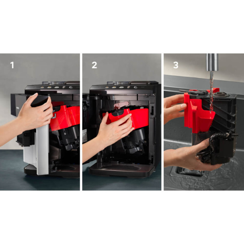 Система автоматичного очищення та видалення накипу (Calc’nClean) подовжує термін служби пристрою. Знімний заварювальний блок легко миється під проточною водою, а автоматичне промивання після кожного використання забезпечує бездоганну чистоту.