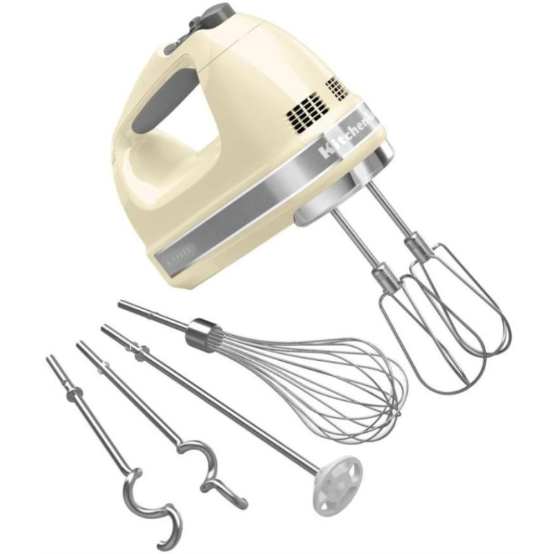 Повний асортимент аксесуарів означає, що ви можете приготувати випічку або кондитерську випічку. Два турбозбивачі з нержавіючої сталі входять до стандартної комплектації, відмінно підходять для важких сумішей або великих кількостей. Чотири додаткові аксесуари включають два гачки для тесту, віночок на 16 проводів, міксер, та захисний бавовняний мішок для зберігання. Виберіть один із чотирьох класичних кольорів: ампірний червоний, оніксовий чорний, мигдально-кремовий або контурний сріблястий. Вага 1,1 кг і ручка з м'якою рукояткою ручний міксер легкий і зручний для змішування однією рукою. Поворотний шнур забезпечує додаткову гнучкість, тому ви можете вільно рухатися під час змішування. Додайте в свою сім'ю KitchenAid або привітайте нового нового члена у вашому будинку, додавши креативність до приготування їжі.