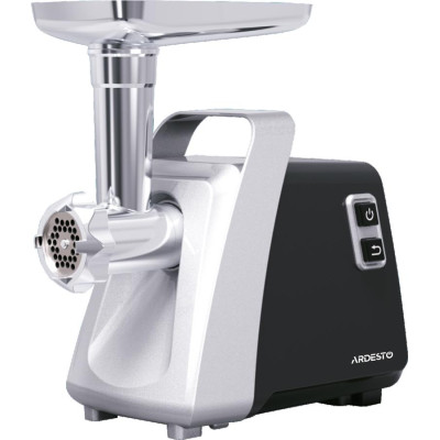 Номінальна потужність: 550 Вт Максимальна потужність: 2100 Вт Продуктивність: 2,0 кг/хв Металева втулка шнека Кнопкова фіксація горловини Перемикач реверсивного обертання Захист двигуна від перевантаження 3 перфорованих диски для грубого, стандартного та дрібного помелів (7 мм/5мм/3мм) Х-подібний ніж із високоякісної нержавіючої сталі Металевий лоток для завантаження продуктів Насадки: для томатного соку та ягід, 4 тертки: велика тертка, стандартна тертка, шатківниця, насадка для дерунів, бургер-прес, насадки для кеббе та сосисок, штовхач Зручна ручка для транспортування Колір корпусу: сріблястий з чорним