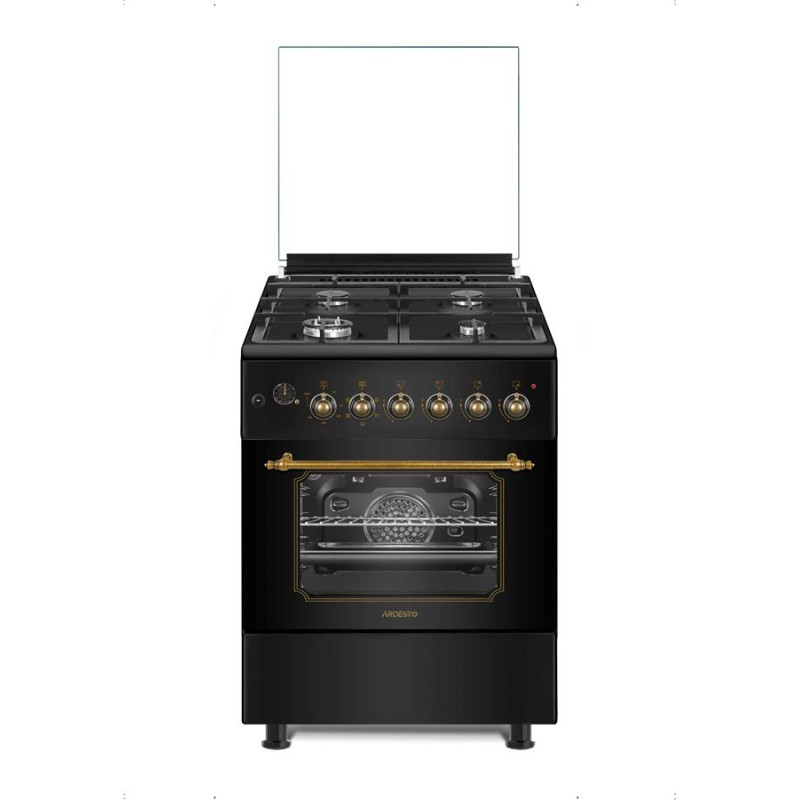 Модель: FSCF-C606BG Модельний ряд: Line-R Країна-виробник: Туреччина Колір: Чорний Тип плити: Комбінована газова варильна поверхня газова, електрична духова шафа Напруга в мережі (В): 220-240 Частота (Гц): 50-60 Сила струму (А): 10 Клас захисту: I Категорія: II2H3B/P Загальна електрична потужність (Вт): 2363 Загальна потужність газу (кВт): 6,3 Загальне споживання газу (м.куб./год): 0,601 Конфігурація варильної поверхні: 4 газові конфорки (пальники) Швидкий пальник варильної поверхні (кВт): 2,3 Напівшвидкий пальник варильної поверхні (кВт): 2 x 1,55 Допоміжний пальник варильної поверхні (кВт): 0,9 Чавунні решітки Тип запалювання: Автоматичне, в ручці Газ-контроль: Так Кришка: Скло Тип встановлених газових форсунок: NG (G20 - 13 mBar) Додатково в комплекті форсунки для скрапленого газу (LPG) При переході на скраплений газ рекомендуємо підключати плити до вибухобезпечних композитних балонів Hexagon Ragasko Клас енергоефективності камери духової шафи: А Об'єм дух.шафи (л): 53 Кількість стекол дверцят дух.шафи: 2 Тип нижнього ящика: Відкидний Таймер: Так, аналоговий Тип очистки духової шафи: Традиційний Освітлення в духовій шафі: Так, 25Вт Тип напрямних: Рельєфні Нижній нагрівальний елемент духової шафи (Вт): 1200 Верхній нагрівальний елемент духової шафи (Вт): 1100 Конвекція (Вт): 32 Рожен (Вт): 6 Внутрішнє покриття: Емаль легкої очистки Стандартне деко (шт): 1 Решітка (шт): 1