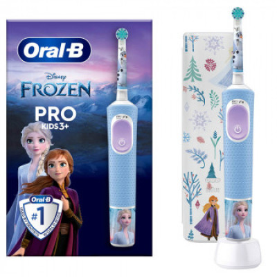Зубная щетка Braun Oral-B Kids Frozen D103.413.2KX Special Edition. 2D-технология чистки зубов (совершает возвратно-вращательные движения, тщательное удаление налета с каждого зуба). Режимы чистки: 2 (ежедневный, деликатный). Профессиональный 2-минутный таймер (4 по 30 секунд). Количество насадок: 1 («Kids Frozen» EB 10 – для молочных зубов). Дорожный футляр. Влагоустойчивый корпус. Прорезиненная ручка. Бесконтактная зарядка. Система питания: аккумулятор. Для детей возрастом от 3 лет. Совместима со всеми насадками для зубных щеток Oral-B серии «EB» и «OD».