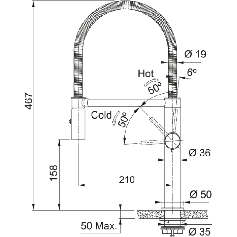 Высота змішувача 467 мм