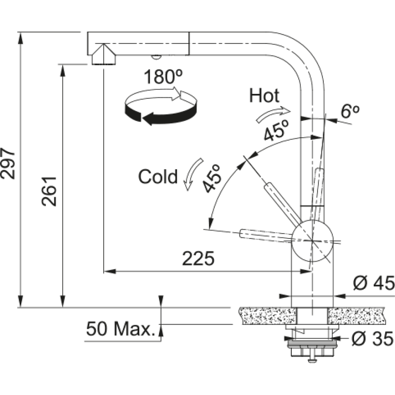 Высота змішувача 297 мм