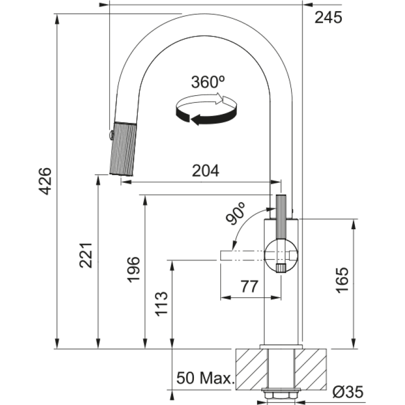 Высота змішувача 426 мм