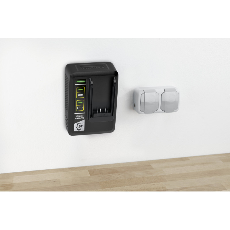 Доступно в течение 2-3 днейБыстрозарядное устройство в быстрозарядном комплекте Kärcher Battery Power 36/50 заряжает аккумулятор Kärcher 36 В / 5,0 Ач до 80% всего за 1,5 часа. Комплект подходит для использования во всех устройствах на аккумуляторной платформе Kärcher 36 В.