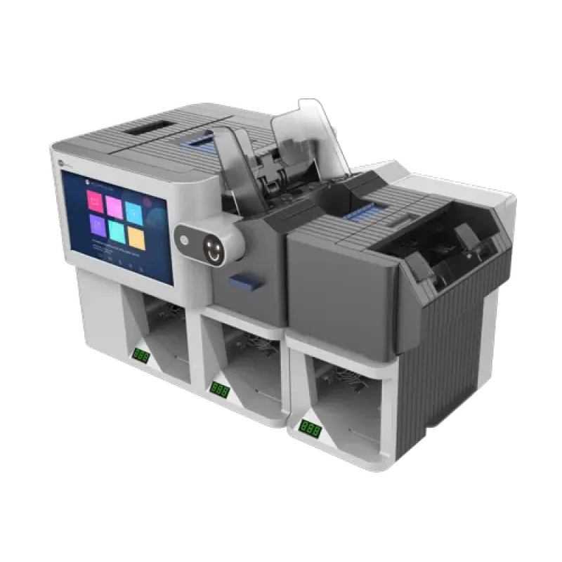 Три кишенькові сортувальники від GRGBanking серії CM - це високопродуктивні сортувальники банкнот, які побудовані з використанням передових технологій розпізнавання і визначення справжності банкноти, що забезпечують високу швидкість і точність обробки готівки. Технологія оптичного розпізнавання символів (OCR) і двосторонній оптичний сканер зображення дають змогу зчитувати, та передавати серійні номери на ПК, зберігати детальний образ кожної банкноти в сховищі образів. Користувач може здійснювати пошук серійних номерів і зображень банкнот за ім'ям і номером оператора, датою і часом. Заснована на сучасному ПЗ платформа забезпечує масштабованість системи, а 9-дюймовий рідкокристалічний сенсорний дисплей збільшує можливості користувача. Модульна конфігурація, в основі якої 3+1 кишеньковий основний сортувальний блок, ідеальна для застосування різних режимів обробки банкнот у касових центрах і бек-офісах філій. Моделі вирізняються точною обробкою готівки. Різноманітні режими сортування банкнот дозіоляють здійснювати зручне ,гнучке та ефективне управління обробки готівки. Банкноти можуть бутирозсортовані у відповідності з наступними критеріями: Сортування за придатністю Сортування за номіналом Сортування за орієнтацією Сортування за версіями Встановлення автентичності Перерахунок суми Професійна технологія детекції банкнот виявляє забруднені, зафарбовані, склеєні клейкою стрічкою (відновлені), надірвані банкноти та банкноти із загнутими/відірваними кутами. Налаштовуваний алгоритм розпізнавання валют забезпечує сортування банкнот станом на 10 різних рівнів, які відповідають найточнішим критеріям сортування. Автоматичне розпізнавання серійного номера банкноти (опція) зі швидкістю 12 банкнот за секунду: серійні номери можуть бути записані в PC, а образи обох боків банкнот можуть бути збережені на зовнішньому носії. Користувачі можуть перевірити інформацію про серійний номер банкноти та її зображення. Інноваційна конструкція з антистатичними властивостями ефективно видаляє з банкнот статичну електрику і завдяки цьому дає змогу сортувальнику банкнот обробляти як паперові, так і полімерні банкноти. Модельний ряд має дуже зручний користувацький інтерфейс. Рідкокристалічний сенсорний дисплей діагоналлю 9" зі зрозумілими підказками щодо роботи та інструкцією користувача підвищує ефективність роботи оператора з машиною Завантажувальна кишеня дає змогу оператору безперервно додавати банкноти без зупинки машини Вбудована багатомовна операційна система забезпечує розширення можливостей пристроїв для кращого опрацювання готівки та використання рішень з управління її опрацюванням. Всі моделі оснащені цифровими дисплеями з високою яскравістю для зазначення кількості банкнот у накопичувачі. Конструкція приймальних кишень з автоматичною видачею банкнот забезпечує можливість автоматичного виштовхування сформованої пачки банкнот. За допомогою інтерфейсів USB, RS-232 і LAN сортувальник може приєднуватись до зовнішнього рідкокристалічного дисплея, принтера і персонального комп'ютера для управління звітами про сортування банкнот. Конструкція моделей передбачає просте обслуговування, яке забезпечується швидким і легким доступом до пристроїв транспортування банкнот для видалення застряглих банкнот і очищення т