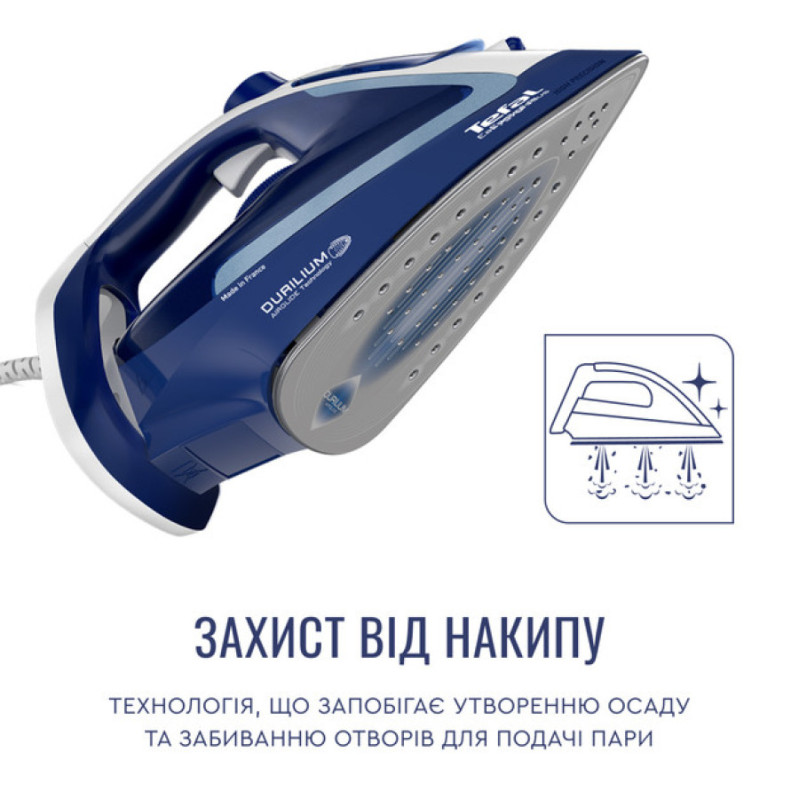 Високоякісна підошва Durilium Airglide праски Tefal FV5735 дарує найкраще ковзання та максимальну ефективність. А завдяки технології захисту від подряпин праска прослужить вам справді довго.