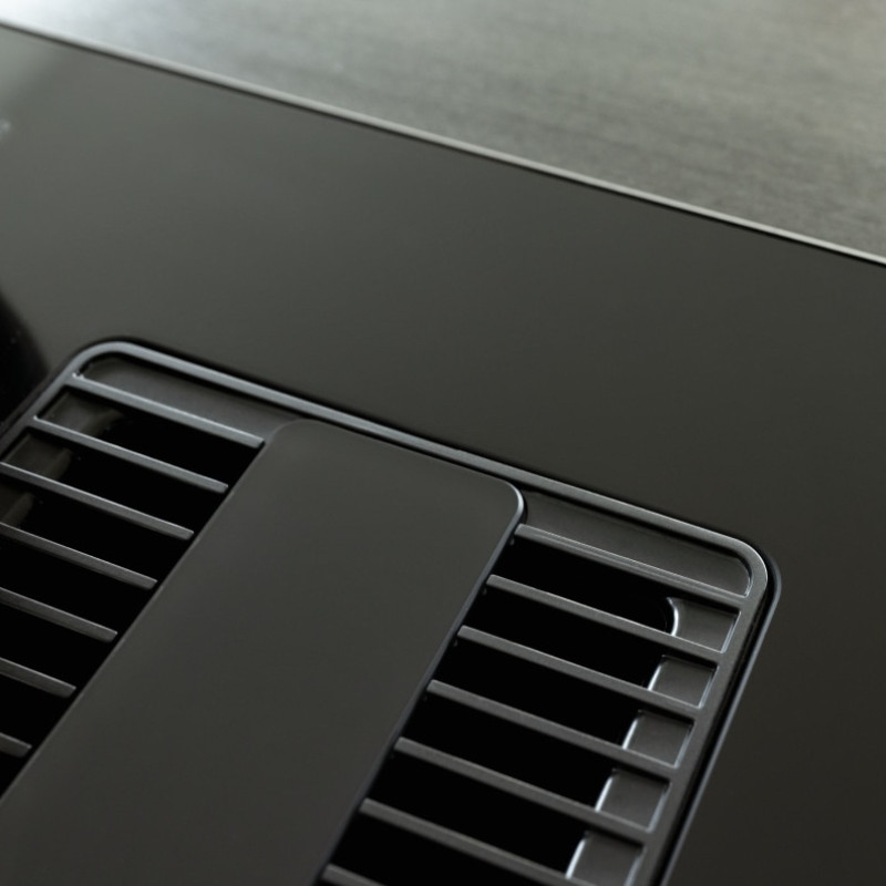 Абсолютна елегантність та вища функціональність. Чорна скляна поверхня у поєднанні з дизайном грат робить Mythos 2Gether бездоганним рішенням для красивих, мінімалістичних та високотехнологічних кухонь. Але ця поверхня з вбудованою витяжкою далека від того, щоб бути просто прекрасною: вона відноситься до виробів класу А + з енергоефективності; в той же час, потужність втягування вражаюча завдяки продуктивності 620 м³/год і функції Booster. У ній передбачено 4 індукційні Flexi зони, 2 з яких можна об'єднувати завдяки функції Bridge для великих сковорідок, 9 рівнів потужності, а також функція посилення та таймери для всіх зон. І вся ця ефективність відповідає рівню шуму лише 67 дБ у режимі роботи на максимальній швидкості.