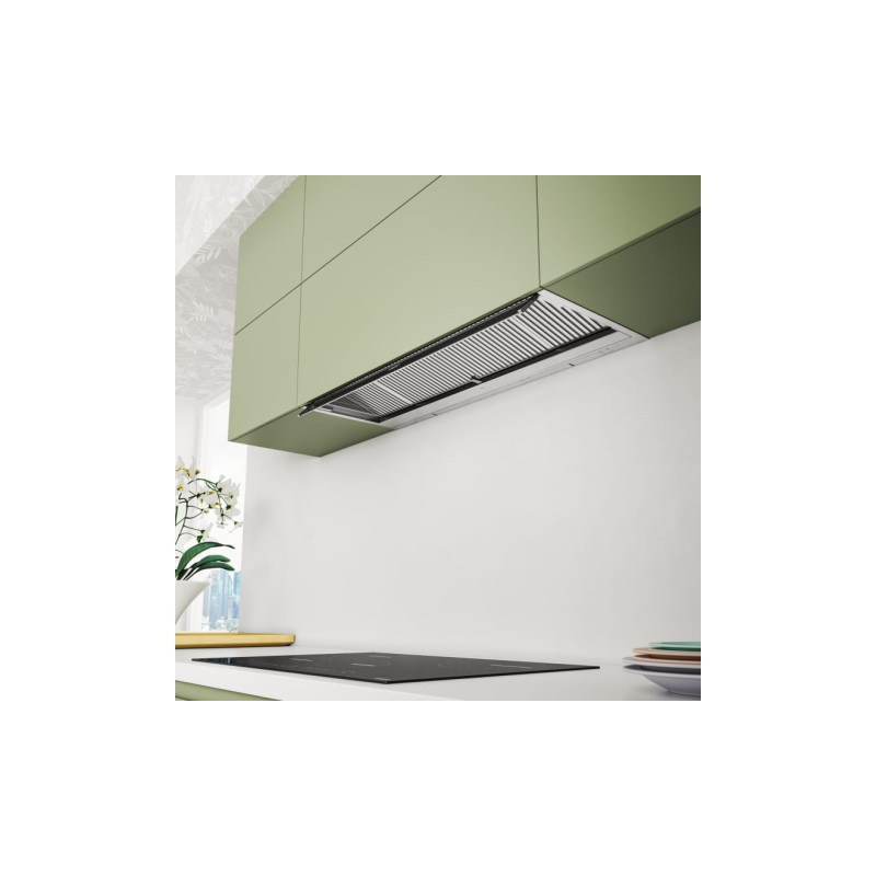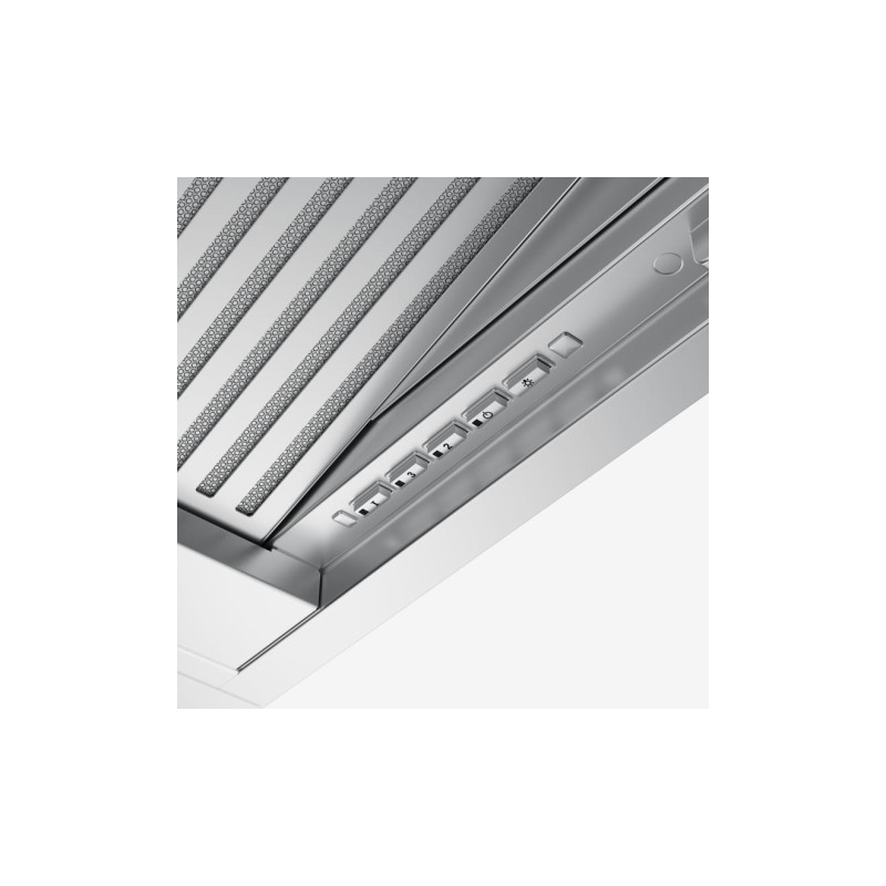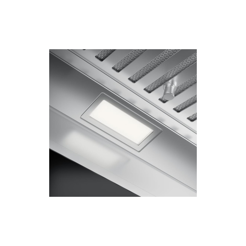 Витяжка призначена для вбудовування в шафку при цьому повністю замінює її дно. Це зменшує кількість місць, де може накопичуватись жир і забруднення. Витяжка залишатиметься непомітною, і ви зможете виконати меблі в необхідному вам форматі. Продуктивність витяжки дозволяє ефективно працювати на площі до 27 квадратних метрів. Продуктивність на максимальній швидкості складає 670 м куб./год. Витяжку необхідно монтувати на висоті мінімум 53 см над газовою варильною поверхнею та 41 см над електричною, в тому числі індукційною. Алюмінієві антижирові фільтри захищають мотор, корпус та повітропровід вид жирових відкладень. Фільтри потрібно мити кожні 100 годин роботи вручну або в посудомийній машині. Електронне управління дозволяє керувати витяжкою легко і комфортно. Перевагою такого управління в тому, що знаходити необхідну кнопку можна тактильно нащупавши її пальцями. Додатково витяжкою можна управляти з пульту дистанційного керування. Це особливо актуально для великих кухонь. Пульт дозволяє увімкнути освітлення чи вентиляцію не підходячи до витяжки. Для відведення залишкових випарів витяжку рекомендують залишити працювати на певний час. Дана модель має таймер, активувавши який можна залишити витяжку працювати і вона вимкнеться через 30 хвилин. Максимально чисте повітря в кухні забезпечить режим цілодобового провітрювання. Витяжка вмикатиметься щогодини на 10 хвилин на мінімальну швидкість. Таким чином робота приладу не принесе дискомфорту, а повітря в кухні буде свіжим. Коли настане час помити антижировий фільтр індикатор на панелі управління сповістить про це. Якщо витяжка працює в режимі рециркуляції через вугільні фільтри можна також активувати сигнал насичення вугільних фільтрів. Через 200 годин роботи на панелі зand#8217;явиться світлове сповіщення після якого фільтри потрібно помити або замінити. Скидання сигналізації відбувається утриманням відповідної кнопки протягом кількох секунд. Витяжка має яскраве та економне LED підсвічування потужністю 2 Вт. Спеціальна конструкція витяжки запобігає накопиченню конденсату на фільтрах, тому краплі води з такої витяжки ніколи не капатимуть на плиту чи в посуд. Особливо рекомендується встановлювати такі витяжки над індукційними варильними поверхнями. Завдяки інноваційному дизайну турбіни значно зменшується турбулентність і завихрення внутрішнього потоку повітря. Витяжки з технологією Sound Pro працюють тихіше на 4-6 дБ залежно від моделі.