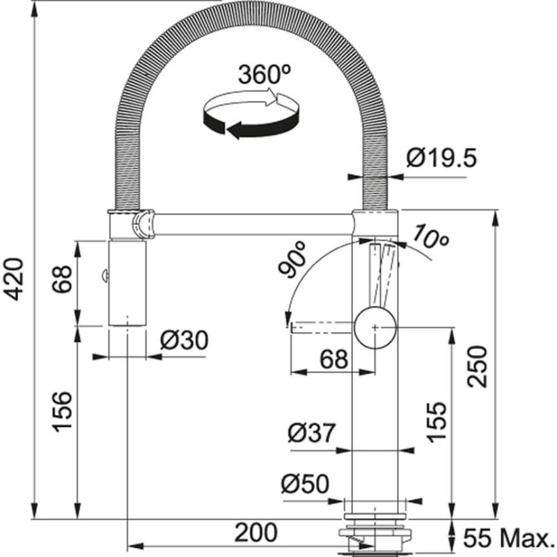 Змішувач з боковим розташуванням ручки управління. Гнучкий вилив дозволяє зручніше працювати із змішувачем. Також змішувач може перемикатися у режим душу. Змішувач може заощаджувати воду завдяки тому, що картридж має проміжне положення з неповним відкриттям. Потік води – 8 л/хв (3 бар)