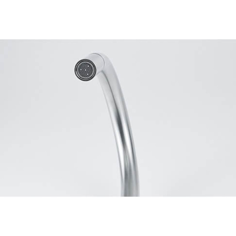 Змішувач з боковим розташуванням ручки управління. Витяжний вилив дає можливість заповнювати ємності поза чашею миття. Ламінарний потік – легкий, тихий та прозорий потік води без розбризкування. Потік води – 8 л/хв (3 бар)