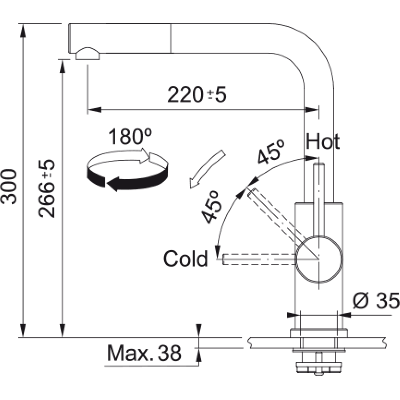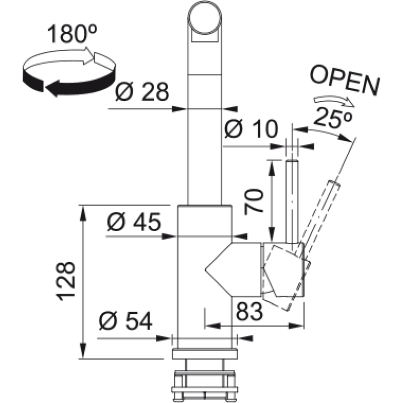 Кухонний змішувач з поворотним витяжним виливом і бічним важелем керування. Інноваційний аератор формує кришталево-чистий, прозорий ламінарний потік води без розбризкування. Витяжний вилив дозволяє зручно мити всю поверхню мийки та наповнювати посуд, який розміщений поза її межами. Кут повороту виливу складає, 180° тому водяний потік досягає більшої площі мийки. Корпус та елементи змішувача не піддаються корозії та впливу мийних засобів, тому змішувач є надзвичайно довговічним та стійким до стирання чи подряпин.