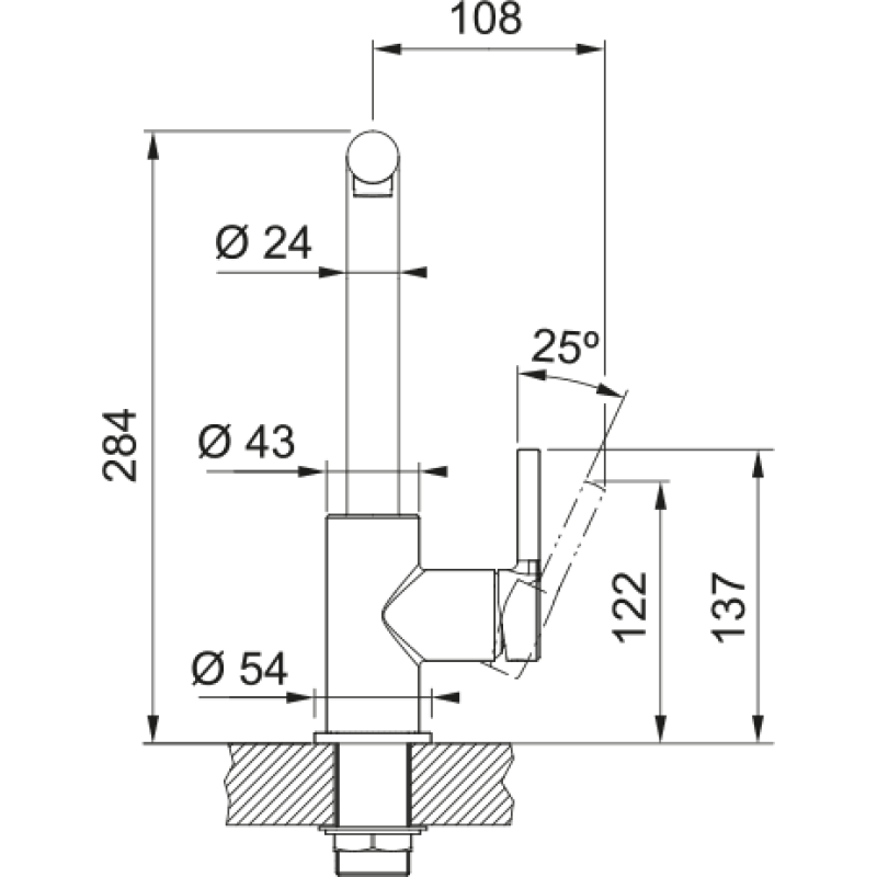 Висота змішувача 284 мм