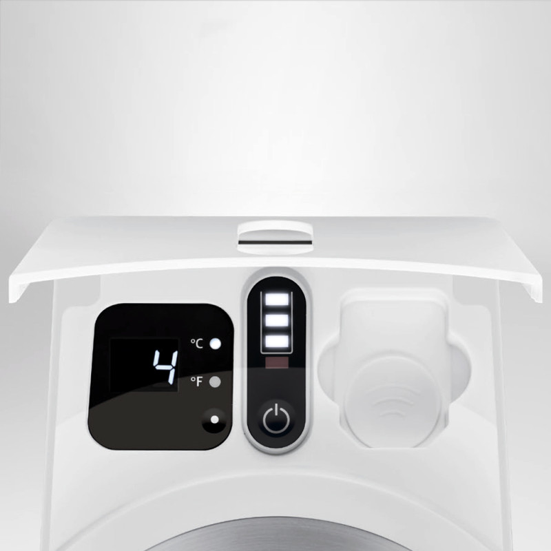 Зручне безпосереднє заповнення молока без трудомісткого вилучення контейнера для молока, цифровий індикатор температури та вставна алюмінієва кришка, оптимально адаптована до контейнера для молока, забезпечують зручність у користуванні та максимальний комфорт у використанні.