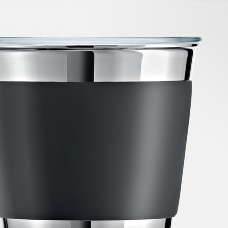 Його відрізняють чіткі лінії, продумані риси на візуальному та тактильному рівні, а також ретельно підібрані матеріали, що значно спрощує принцип використання та гарантує оптимальну гігієнічність при приготуванні чарівної молочної піни. Спінювач молока має дві насадки і готує молоко або молочну піну в холодному, теплому або гарячому вигляді за одним натисканням кнопки управління.
