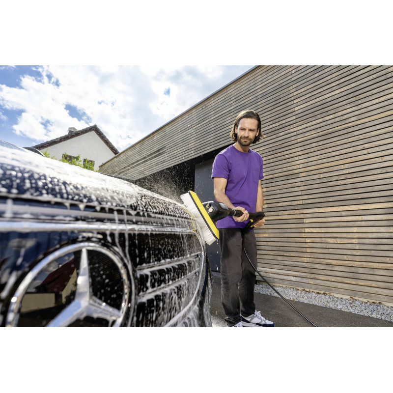 Доступно впродовж 2-3 днівЧудова комбінація: мийна щітка "3 в 1" WB 7 Plus дозволяє виконувати три важливі функції. Нанесення піни, видалення стійких забруднень струменем високого тиску або ретельне і водночас дбайливе очищення м'якою щіткою - все це можна робити без заміни приладдя. Необхідна функція просто вибирається важелем, встановленим на рукоятці щітки. Завдяки цьому мийна щітка має універсальні можливості, економить час, гарантує комфортну роботу і чудовий результат чищення - навіть під час обробки таких чутливих матеріалів, як скло, пластик або лакофарбове покриття. При цьому вбудований бачок для засобу для чищення забезпечує тривалу роботу без дозаправки. Сумісна техніка