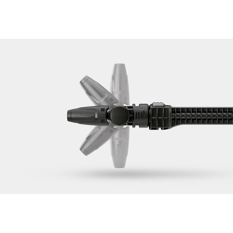 Використання струменевої трубки VJ 24 Handheld короткого типу, що повертається в секторі 360°, дозволяє без проблем очищати важкодоступні місця. Плоский струмінь води, що формується насадкою, ефективно видаляє забруднення, а роз'єм Quick Connect дозволяє швидко і легко, однією рукою встановлювати замість неї інші аксесуари системи Handheld. Струменева трубка VJ 24 Handheld сумісна з апаратами середнього тиску Kärcher. Для її застосування додатково потрібна подовжувальна трубка Handheld. Сумісна техніка