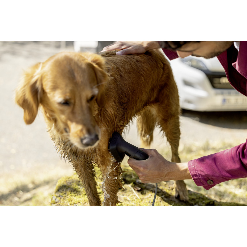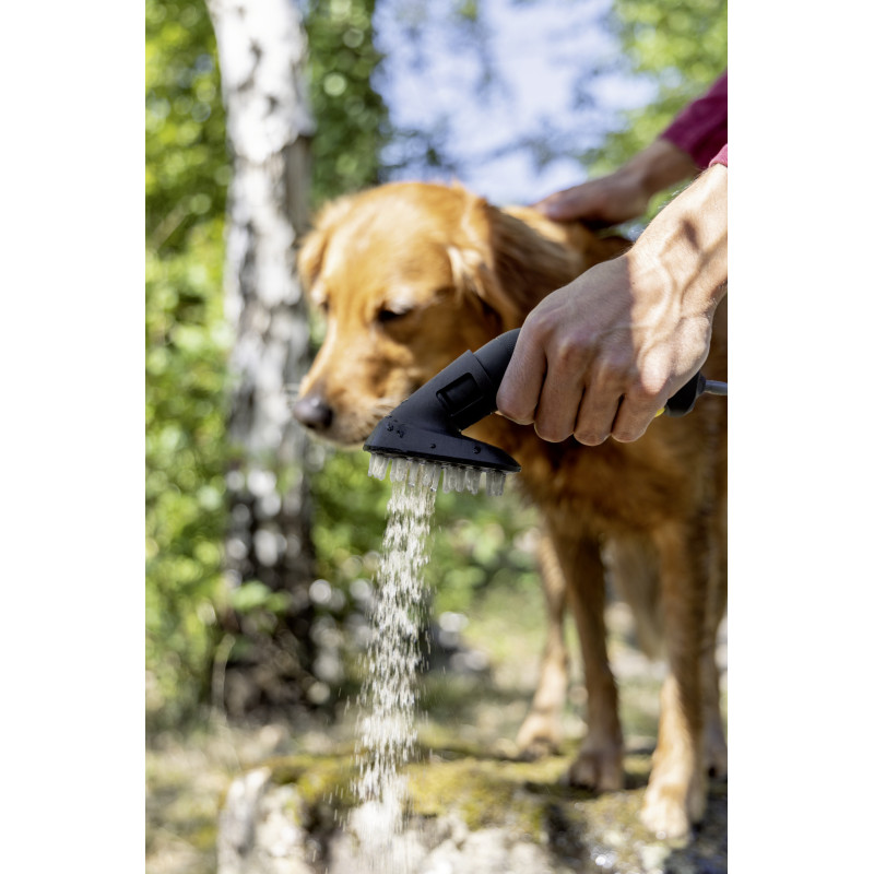 Доступно впродовж 3-4 днівЖодних брудних лап - щітка для домашніх тварин, якою можуть бути дооснащені будь-які портативні мийки серії OC 3, швидко, дбайливо і ретельно очищає їх. Вона ідеально підходить для очищення собачих лап у погану погоду перед поверненням з прогулянки додому або поїздкою в автомобілі. Еластична силіконова щетина щітки ефективно очищає шерсть від бруду і викликає у тварин приємні відчуття. Щітка приєднується безпосередньо до пістолета портативної мийки OC 3 і зволожується водою при натисканні на його важіль. Комбінація м'якого душового струменя низького тиску (аналогічного струменю води з душової лійки) з механічною дією щетини забезпечує чудовий очисний ефект і водночас чинить масажувальний вплив, який подобається багатьом тваринам. Забруднення, що відокремлюються, одразу ж змиваються, причому дуже економна витрата води сприяє заощадженню заряду акумулятора і подовженню часу роботи апарату. Сумісна техніка
