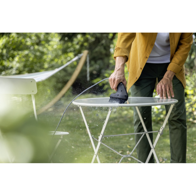 Доступно впродовж 3-4 днівУніверсальна щітка чудово підходить для швидкого і ретельного видалення та змивання присохлих відкладень бруду або, наприклад, клейкого нальоту, утвореного на садових меблях квітковим пилком. Вплив струменя води під напором у поєднанні з механічною обробкою поверхні щетиною забезпечує швидке проміжне прибирання з чудовим результатом. Такою щіткою можна також очищати, наприклад, велосипеди та різне туристське спорядження. Щітка встановлюється безпосередньо на пістолеті. Завдяки ергономічній формі рукоятки з протиковзкою профільованою вставкою щітка зручно лежить у руці та гарантує роботу без перевтоми. Подача води здійснюється тільки при натиснутому важелі пістолета, що забезпечує її економне використання, а також сприяє заощадженню заряду акумулятора. Універсальна щітка сумісна з усіма портативними мийками серії OC 3. Сумісна техніка