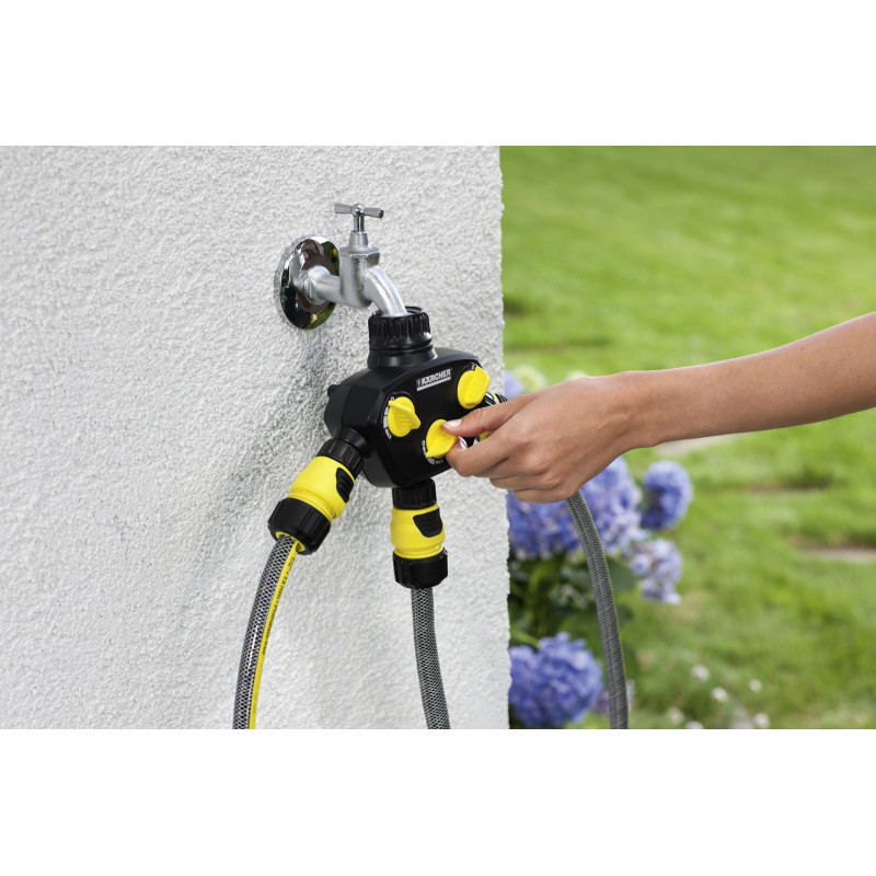Доступно впродовж 2-3 днівВисокоякісний 3-канальний розподільник з штуцером для приєднання до крану G1 і перехідником G3/4 для одночасного поливу за допомогою трьох шлангів. 3-канальний розподільник оснащений трьома штуцерами для під'єднування до крану з трьома незалежними безступінчатими регуляторами і характеризується оптимізованою витратою води. Він підходить для використання у поєднанні з будь-якими стандартними садовими шлангами і підкуповує надійною якістю, ергономічною конструкцією і простим і комфортним зверненням. Накидна гайка з міцним внутрішнім різьбленням гарантує легку і зручну фіксацію на водопровідному крані. 3-канальний розподільник сумісний з більшістю стандартних систем стикового з'єднання.