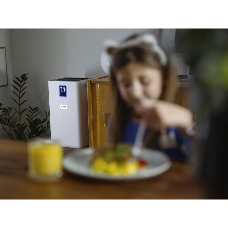 Доступно впродовж 2-3 днівЧудове рішення для очищення повітря у житлових та робочих приміщеннях великих розмірів: апарат AF 50, оснащений системою багатократної фільтрації, видаляє з повітря алергени, шкідливі речовини та хвороботворні мікроорганізми. Очищувач надійно очищує повітря в приміщеннях площею до 50 м² (при висоті стелі 3 м) або до 65 м² (при висоті стелі 2,6 м). Іншими його особливостями є наявність фільтра з активованого вугілля та цифрового дисплея, що відображає вміст домішок (часток класу PM 2,5 мкг/м³), температуру та відносну вологість повітря, а також колірного індикатора якості повітря. Крім того, очищувач повітря вражає функцією таймера, захистом від дітей (функцією блокування), нічним режимом і дуже тихою роботою. Ефективність фільтрації частинок розмірами 0,3 мкм становить 99,95%. Очищувач повітря обладнаний також високоякісним лазерним датчиком для роботи в автоматичному режимі, коли його продуктивність автоматично підлаштовується до ступеня забрудненості повітря. Термін служби фільтрів становить близько 1 року (залежно від забруднення повітря та інтенсивності використання апарату).