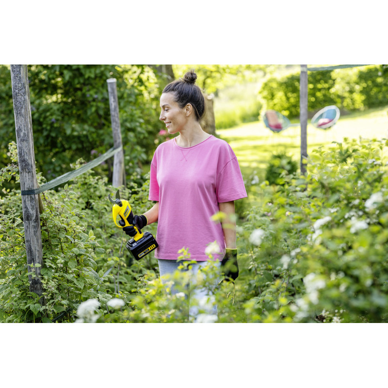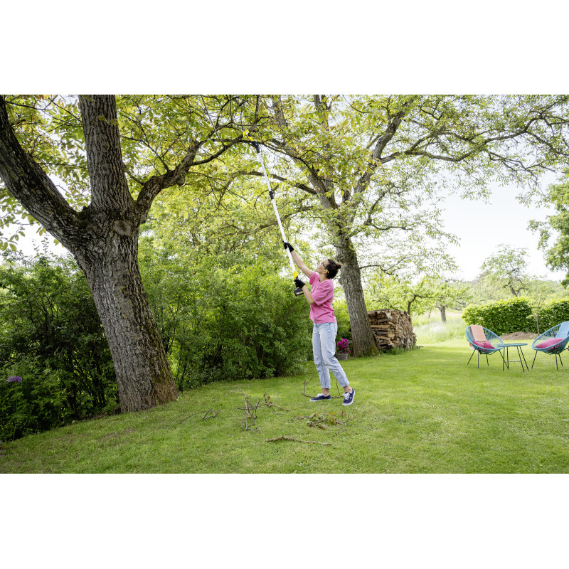 Доступно впродовж 2-3 днівАкумуляторний секатор Kärcher легко справляється із сучками діаметром до 2,5 см. Цей інструмент значно спрощує догляд за деревами та чагарниками завдяки потужному обвідному ножу, який дозволяє акуратно та без зусиль вирізати гілки. Така обережна обрізка сприяє здоровому зростанню рослин. Додаткову зручність під час роботи над головою забезпечує опціональний телескопічний подовжувач, що дозволяє обрізати гілки на висоті до 3,5 м.